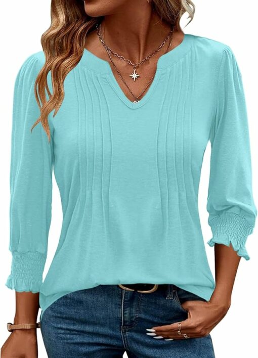 - Butter soft Fabric :Made from 60% polyester, 35% rayon, and 5% spandex, this women’s 3/4 sleeve top is soft, stretchy, and gentle on the skin. The durable fabric keeps its shape and color, ensuring all-day comfort from work to weekend