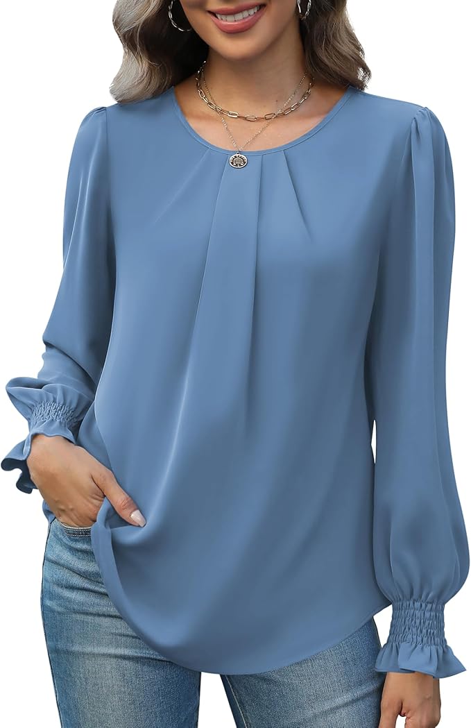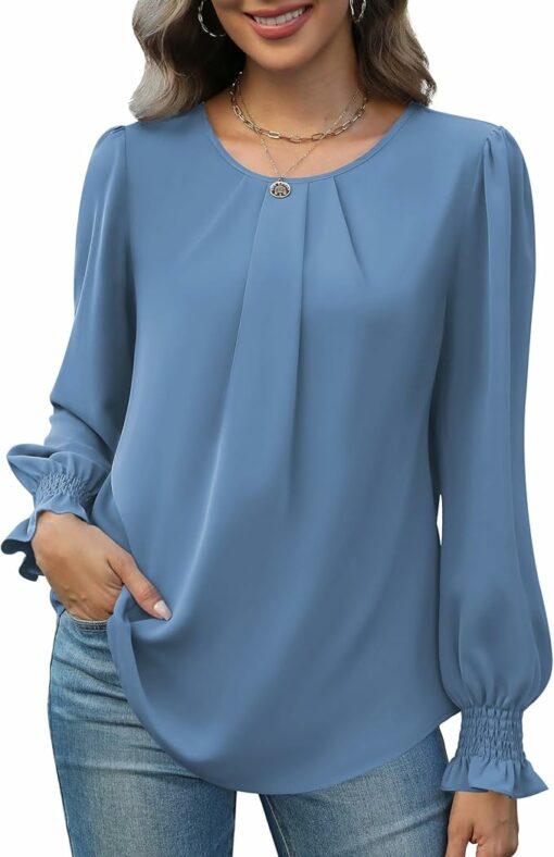 【Quality Material】Women’s chiffon blouses are made with soft and lightweight fabric, silky smooth, comfortable and breathable to wear. A must have item for your wardrobe. Note: White color is a bit see-through and can be worn with a skin tone bra underneath.