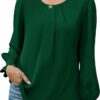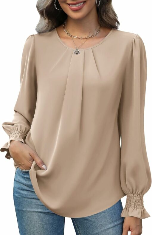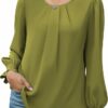 【Quality Material】Women’s chiffon blouses are made with soft and lightweight fabric, silky smooth, comfortable and breathable to wear. A must have item for your wardrobe. Note: White color is a bit see-through and can be worn with a skin tone bra underneath.