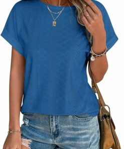 - Material:This Eyelet Embroidery summer tops is made of 94% Polyester,6% Spandex.Breathable,lightweight and comfy to wear all day