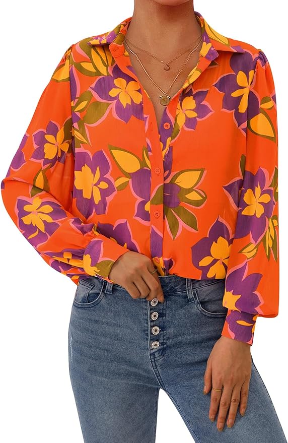 This fall tops for women made of high-quality chiffon fabric, soft, breathable, lightweight and skin-friendly, perfect for all-day wear.The women’s blouses floral print also gives it a boho style and a stylish feeling