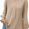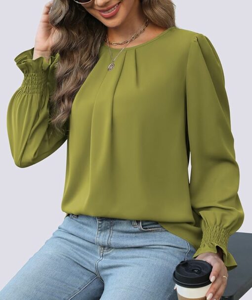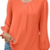 【Quality Material】Women’s chiffon blouses are made with soft and lightweight fabric, silky smooth, comfortable and breathable to wear. A must have item for your wardrobe. Note: White color is a bit see-through and can be worn with a skin tone bra underneath.