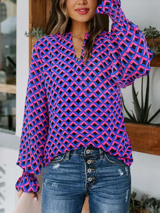 - Our floral blouse is long enough to wear out or tuck in a small front piece.Perfect to pair with your slacks,shorts,jeans for a laid-back look, or dress it up with skirts and heels for an elegant look.