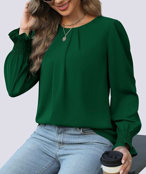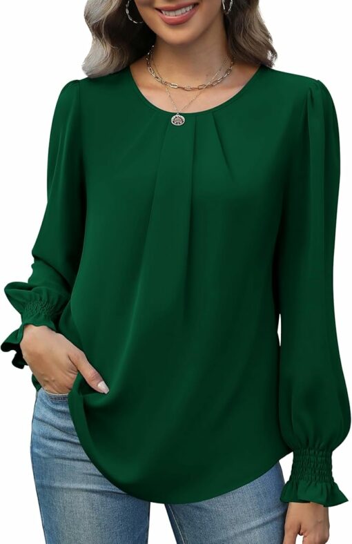 【Quality Material】Women’s chiffon blouses are made with soft and lightweight fabric, silky smooth, comfortable and breathable to wear. A must have item for your wardrobe. Note: White color is a bit see-through and can be worn with a skin tone bra underneath.