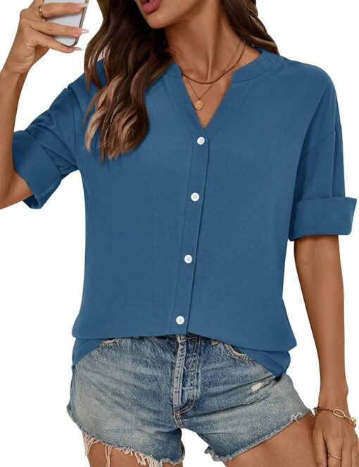 - Material: The button down shirts for women is made of soft, breathable and skin-friendly cotton fabric, which is a wardrobe staple for Spring & Summer and Fall Days.