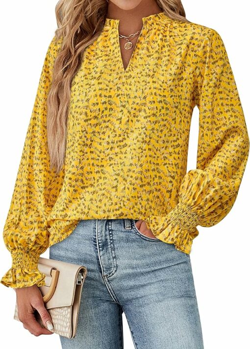 - Our floral blouse is long enough to wear out or tuck in a small front piece.Perfect to pair with your slacks,shorts,jeans for a laid-back look, or dress it up with skirts and heels for an elegant look.